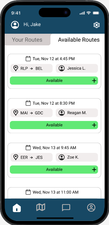 Mobilize was my first-ever Figma design project, and it taught me the fundamentals of translating an idea into a functional, human-centered product. One of the biggest lessons I learned was the importance of color theory and contrast. In hindsight, Mobilize's color palette is very basic, and doesn't set the app apart. Additionally, some colors don't provide enough contrast, making key elements less readable. I’ve since learned how crucial color accessibility is, especially in a product designed for individuals with disabilities. Despite its flaws, Mobilize remains a meaningful project because it represents my first step into UX design, a blend of empathy and problem-solving. It helped me develop a deeper understanding of inclusive design and motivated me to keep improving my craft through iteration and user feedback.